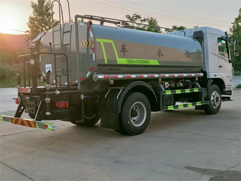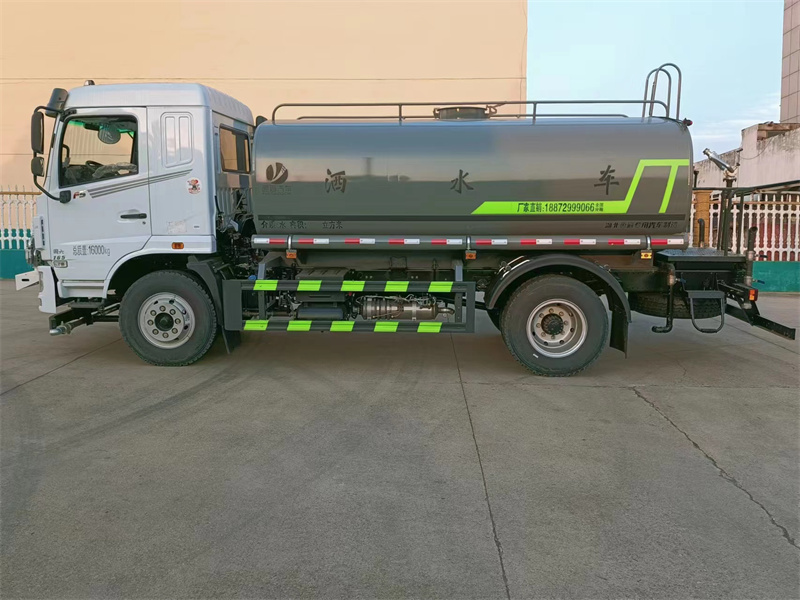 東風(fēng)12噸灑水車產(chǎn)品配置 1.底盤配置: 發(fā)動(dòng)機(jī)玉柴 165 馬力(四缸),法士特 8 檔變速箱,前橋 2.8 噸, 后橋 8 噸,9.00 鋼絲胎,軸距 3950,斷氣剎,ABS,空調(diào),氣囊座椅, 電動(dòng)玻璃,中控鎖,行駛記錄儀2.上裝配置: 1、罐體約為 12 方, 2、邊燈帶電,罐體尾部上方標(biāo)配 2 個(gè)紅色示寬燈, 3、標(biāo)配前噴為鴨嘴直沖,標(biāo)配后沖,用戶可根據(jù)自己的需求,來調(diào) 整對(duì)沖位置。 4、沖孔平臺(tái)(承載能力加強(qiáng)),炮筒后蓋為定制型螺栓卡扣, 5、前噴、后沖、后灑、側(cè)噴,綠化高炮開關(guān)球閥均采用工程專用 50 大通徑銅球閥, 6、新式軸承式水炮,更加耐用, 7、60-90 型水泵, 8、防腐法蘭墊片, 9、鋁制后灑,不易炸開 10、罐體自動(dòng)焊(美國(guó)林肯焊機(jī)及電源),拼板自動(dòng)焊接,封頭環(huán) 縫焊接,無氣孔,焊縫美觀。 11、側(cè)護(hù)網(wǎng)、后保險(xiǎn)杠、均為螺栓連接,方便拆卸,維修方便。 12、塑料擋泥板,替代鐵擋泥板,更加輕便,用螺栓連接,方便拆 卸。 13、前部、后部主管連接處為 6 孔圓法蘭,不易沖墊