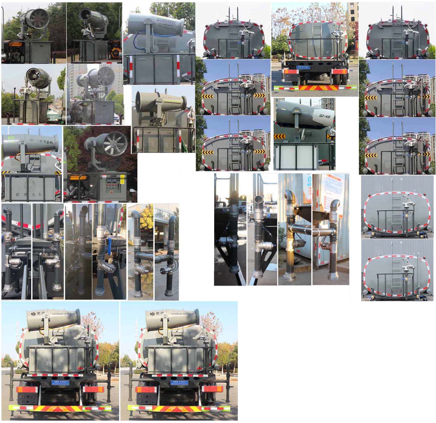 該車主要用于城鄉園林綠化噴灑作業.主要裝置為罐體及噴灑裝置.罐體總容量:20.45立方米;罐體有效容積:19.47立方米;罐體外形尺寸(長×長軸×短軸)(mm):7300×2450×1650.僅采用軸距(mm):1850+3200+1350改裝.側、后防護材料均為:Q235碳鋼,連接方式均為:螺栓連接,后部防護截面尺寸(mm):120×50,后部防護離地高度(mm):490.ABS生產廠家:東科克諾爾商用車制動系統(十堰)有限公司,浙江萬安科技股份有限公司,型號:3631010-C2000,VIE ABS-Ⅱ.選裝前部不帶電子霧炮.選裝電子炮裝置樣式.當前部選裝電子炮裝置時,前伸為500mm,整車長度為11230mm,11750mm.隨底盤選裝駕駛室,選裝噴灑裝置樣式,選裝后部箭頭燈裝置,選裝后部大工作平臺,選裝罐體頂部高位花灑裝置,選裝自動球閥安裝位置,后部作業燈僅在作業時開啟,車輛行駛過程中不可開啟.