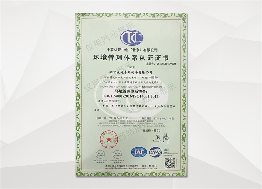 湖北盈通專用汽車有限公司,公告車型代碼:CLT,商標名稱:縱昂牌。國家工信部專用汽車定點生產采購企業,專用汽車及環衛設備生產,制造,銷售;運用自動流水線生產灑水車、垃圾車、掃路車等的企業。