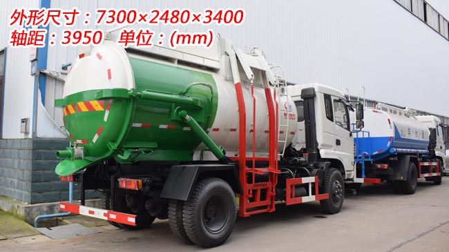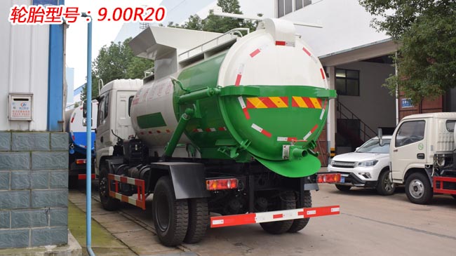 箱體容積10~12立方米,配備掛桶提升機構,后蓋液壓開啟,雙杠液壓舉升自卸,尾部帶自流閥,密封性好,無泄漏。