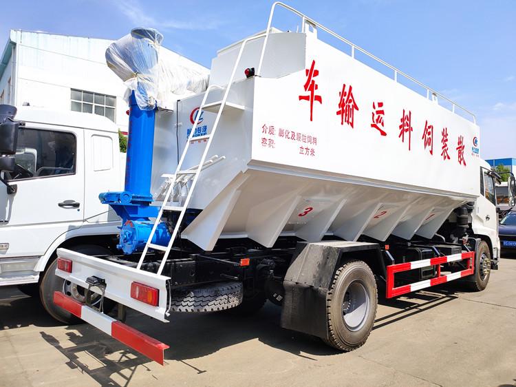 東風天錦單橋散裝飼料車上裝配置:罐體材質采用4mm優(yōu)質碳鋼板,整車3條絞龍,有3個5.5KW電機(萬邦 西門子)帶動,頂部絞龍液壓控制舉升,可左右旋轉180°,罐體可根據(jù)用戶要求做多個獨立分倉,可獨立控制各分倉卸料順序和速度,卸料管傾斜60度,垂直卸料高度8.5米,整車卸料完用時20分鐘。(絞龍長度 6.86X 三角函數(shù)0.87+整車高度-500=垂直卸料高度)