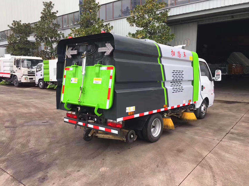 上裝標配:帶4個掃盤、云內42KW副發動機、三洋馬達、施耐德控制開關、海普瑞斯電磁閥組、無級變速自動離合器、免維護離心式自動風機、不銹鋼垃圾箱、上海新西山電子水泵,尾部LED箭頭指示燈、手動泵應急系統、垃圾舉升自卸功能。