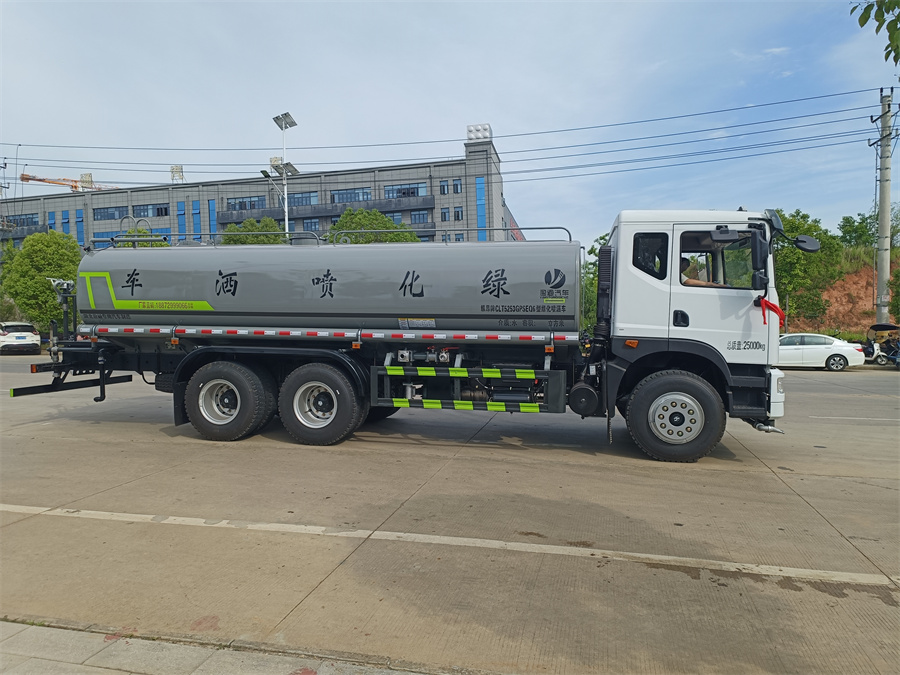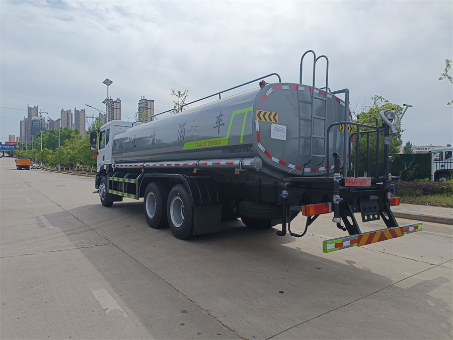 東風20噸灑水車產品標配前噴(鴨嘴)、后沖、后灑、側噴、后置式工作 平臺,平臺上配置綠化水炮(可 360°旋轉,既可以調成柱狀,也可 以調成霧狀,更可以調成直沖狀、大雨、中雨、小雨、毛毛雨),配 備優(yōu)質大功率專用灑水泵(可自吸自排,可從河里或池塘抽水到罐體), 取力器,雜物過濾網,消防接口,自流球閥系統(tǒng)、取力器、球閥、濾網 均為國家標準產品,主管道加粗,法蘭墊、法蘭盤加厚,大通徑球閥。 整體具備性能優(yōu)良安全可靠、效率高、流量大、維修方便等特點IMG20240603160859_副本.jpg