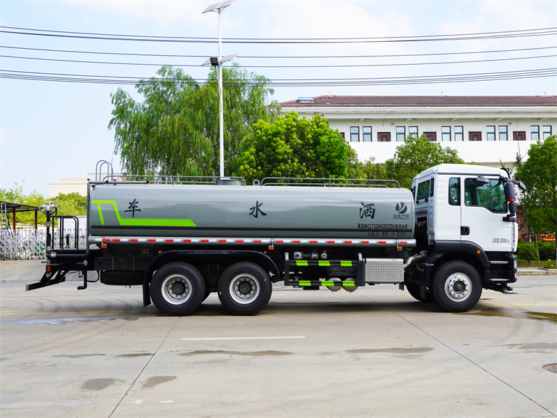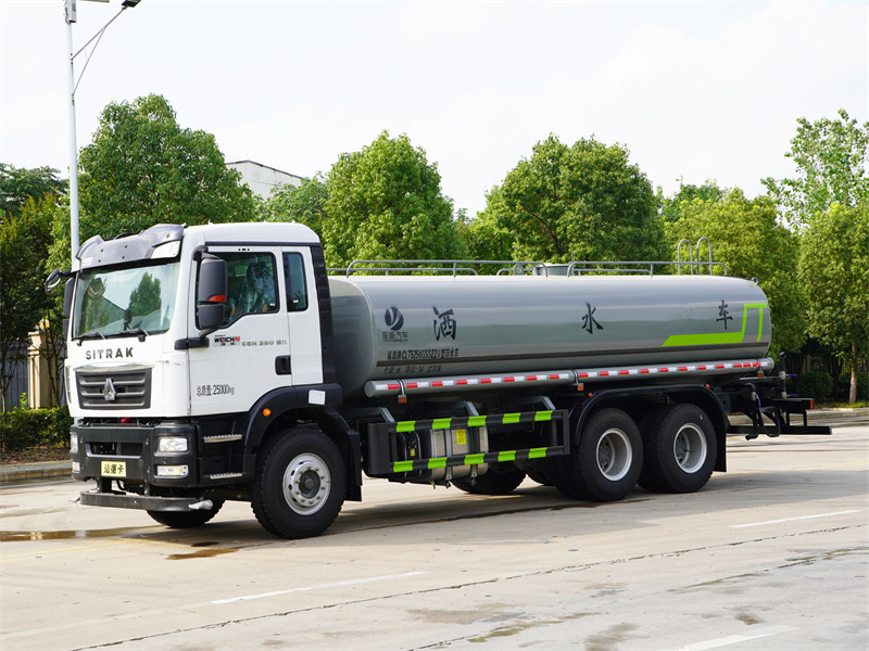 重汽汕德卡18噸灑水車(chē)產(chǎn)品標(biāo)配前噴(鴨嘴)、后沖、后灑、側(cè)噴、后置式工作 平臺(tái),平臺(tái)上配置綠化水炮(可 360°旋轉(zhuǎn),既可以調(diào)成柱狀,也可 以調(diào)成霧狀,更可以調(diào)成直沖狀、大雨、中雨、小雨、毛毛雨),配 備優(yōu)質(zhì)大功率專(zhuān)用灑水泵(可自吸自排,可從河里或池塘抽水到罐體), 取力器,雜物過(guò)濾網(wǎng),消防接口,自流球閥系統(tǒng)、取力器、球閥、濾網(wǎng) 均為國(guó)家標(biāo)準(zhǔn)產(chǎn)品,主管道加粗,法蘭墊、法蘭盤(pán)加厚,大通徑球閥。 整體具備性能優(yōu)良安全可靠、效率高、流量大、維修方便等特點(diǎn)。
