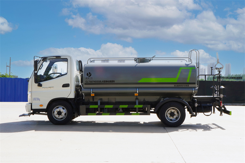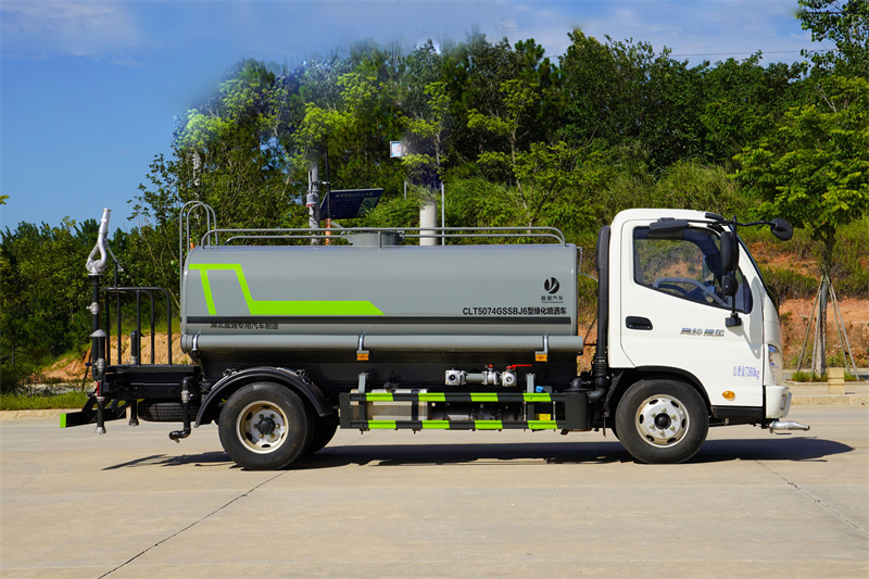 福田奧鈴5噸灑水車產品標配前噴(鴨嘴)、后沖、后灑、側噴、后置式工作 平臺,平臺上配置綠化水炮(可 360°旋轉,既可以調成柱狀,也可 以調成霧狀,更可以調成直沖狀、大雨、中雨、小雨、毛毛雨),配 備優質大功率專用灑水泵(可自吸自排,可從河里或池塘抽水到罐體), 取力器,雜物過濾網,消防接口,自流球閥系統、取力器、球閥、濾網 均為國家標準產品,主管道加粗,法蘭墊、法蘭盤加厚,大通徑球閥。 整體具備性能優良安全可靠、效率高、流量大、維修方便等特點