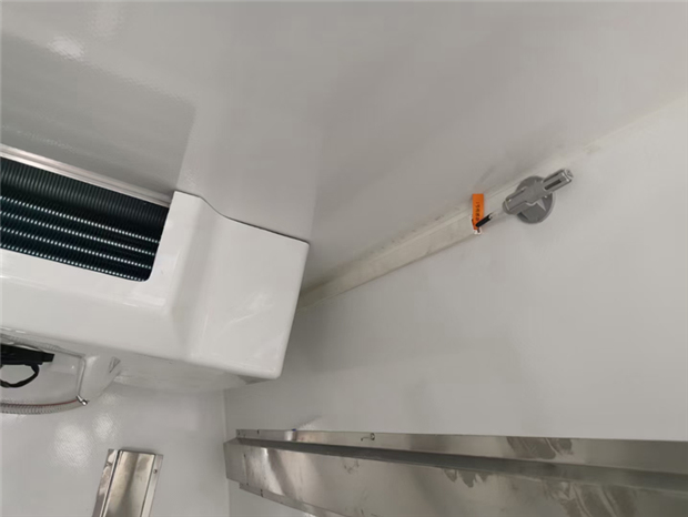 福田G7冷藏車(chē)車(chē)廂配置為:廂體采用內(nèi)外優(yōu)質(zhì)玻璃鋼板,內(nèi)膽圓弧式廂體,地板為鋁花紋板,底板和四周廂板加裝通風(fēng)槽,不銹鋼門(mén)框,鎖件。