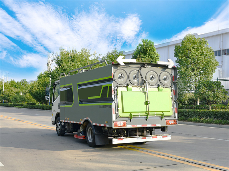 9.集塵箱自主研發(fā)三級降塵技術(shù),采用重力除塵,慣性除塵,濾網(wǎng)除 塵,并結(jié)合脈沖除塵技術(shù),既能將灰塵吸凈,又能防止濾網(wǎng)堵塞。10. 車輛后部集塵箱安裝手動(dòng)吸口,可連接吸塵管直接手動(dòng)操作。