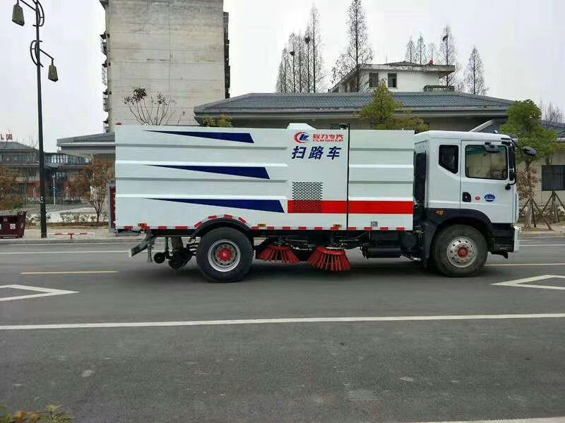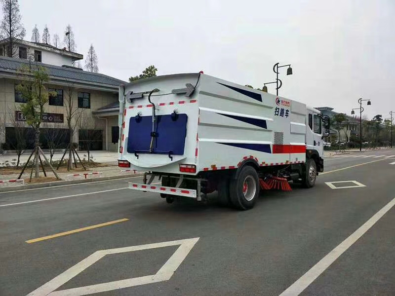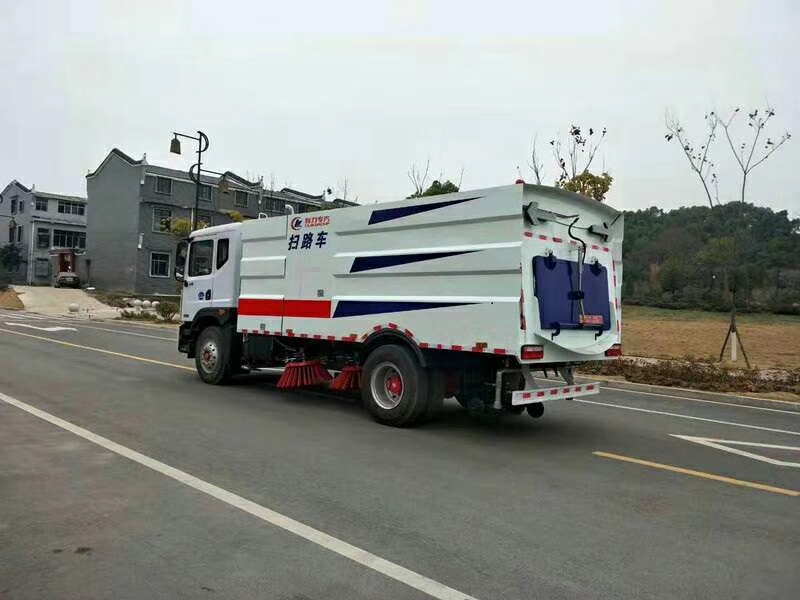1. 采用吸掃結合的方式收集垃圾,濕式除塵、電液控制,液壓傾翻卸料的作業方式對路面進行清掃作業。