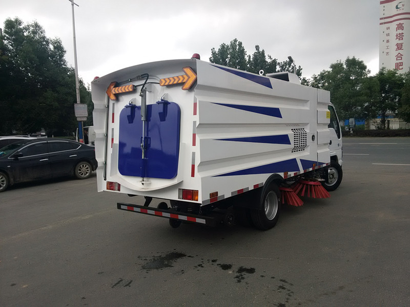 該掃路車采用重慶五十鈴型國五二類底盤改裝,加裝副發動機、風機、清水箱、垃圾箱、左右立掃、后置吸盤,掃盤降塵系統,液壓系統、專用裝置電控系統和副車架等改裝而成。