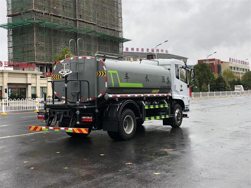 該車主要用于城鄉園林綠化,路面噴灑,除塵和降溫;主要裝置為水罐及噴灑裝置;隨底盤選裝駕駛室;罐體總容量:10.5立方米;罐體有效容積:10立方米;罐體外形尺寸(長×長軸×短軸)(mm):4200×2480×1480,4200×2300×1450;側、后防護材料均為:Q235碳鋼,連接方式均為:螺栓連接,后部防護截面尺寸(mm):120×50,后部防護離地高度(mm):450;ABS型號:ABS/ASR-24V-4S/4M,廠家:襄陽東風隆誠機械有限責任公司。選裝油箱電瓶位置。選裝噴灑裝置樣式,選裝后部箭頭燈,選裝后部弧形噴灑裝置,選裝水炮支架位置,選裝高位花灑管道樣式,選裝自動球閥安裝位置,選裝后部大工作平臺,選裝前部自動炮樣式,前伸500mm,整車長度為7850mm。