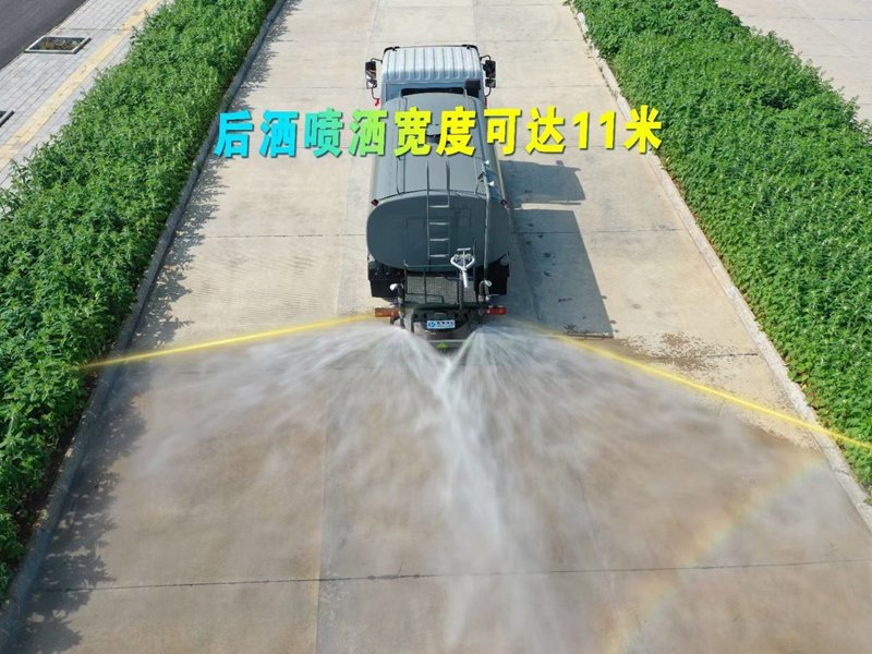 東風福瑞卡綠化噴灑車-9噸綠化灑水車報價-綠化灑水車生產廠家專用功能配置:罐體實際容積約為9立方米,采用武鋼優質碳鋼板卷壓成型。配備專用灑水泵,自吸自排,前噴后灑、側噴、后工作平臺及灑水高壓炮。灑水泵自吸高度為6米左右,整車灑水寬度14米左右,后工作平臺水炮可調成:直沖狀、大雨、中雨、小雨、毛毛雨,有效射程≥28米,整車帶接頭、水位計,自流閥。后工作平臺主管道有一個一寸的澆花接口,附送23米水管,1個爬梯,兩側及后保險杠。