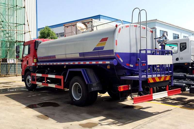 解放12噸灑水車采用一汽解放龍V底盤,白色排半可前翻駕駛室,大柴180馬力國六發動機,6擋變速箱,軸距4500mm,9噸后橋,9.00R20原廠鋼絲胎,原廠abs,帶方向助力,離合助力器,氣剎制動,原廠空調。