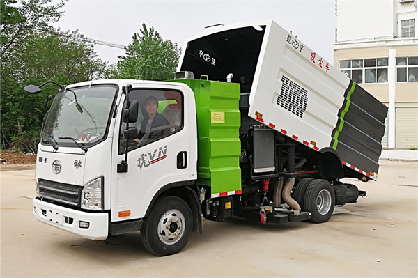 6.垃圾箱容積4m3,水箱1m3內(nèi)部加裝進口防水材料濾筒,垃圾分類存放,能有效地對樹葉,石子,灰塵進行粗細處理,廂體采用傾翻卸料。