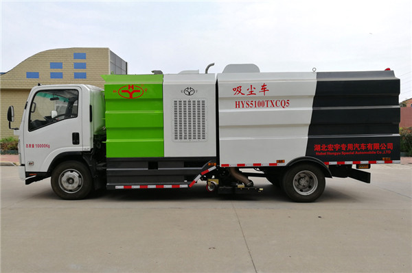 該吸塵車(chē)是采用五十鈴國(guó)五二類(lèi)原廠(chǎng)汽車(chē)底盤(pán)改裝,加裝副發(fā)動(dòng)機(jī)、風(fēng)機(jī)、清水箱、垃圾箱、中置吸盤(pán),工作視頻探頭,自動(dòng)脈沖清理功能,液壓系統(tǒng)、專(zhuān)用裝置電控系統(tǒng)和副車(chē)架等改裝而成。