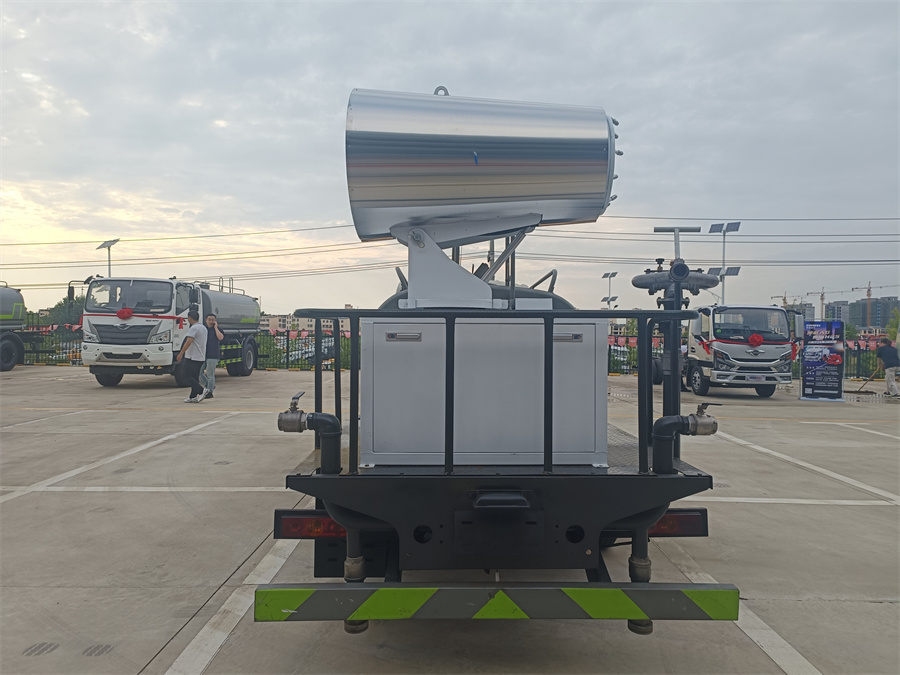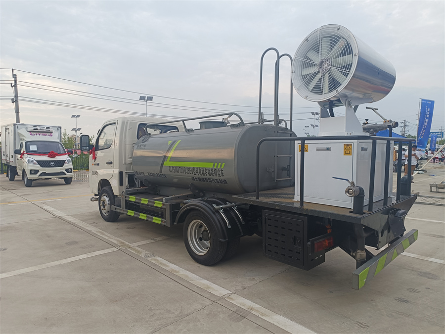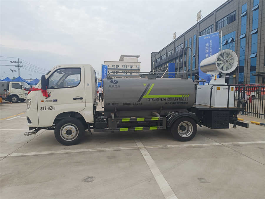 福田純電動小型灑水車該車主要用于城鄉園林綠化,路面噴灑;主要裝置為罐體及噴灑裝置.罐體總容量:1.9立方米;罐體有效容積1.8立方米;介質:丙酮水溶液,密度950千克/立方米,罐體外形尺寸(長×長軸×短軸)(mm):2450×1200×890.側、后防護材料均為:Q235碳鋼,連接方式均為:螺栓連接,后防護截面尺寸:120×50mm,后部防護離地高度(mm):380;蓄電池為磷酸鐵鋰蓄電池,成箱后的儲能裝置總成型號:L173TB3,儲能裝置總成生產企業:寧德時代新能源科技股份有限公司,儲能裝置單體型號:CB220,儲能裝置單體生產企業:寧德時代新能源科技股份有限公司; 驅動電機類型為永磁同步電機,型號為FTTBP075B,額定功率為45kW,峰值功率為90kW,生產企業為北汽福田汽車股份有限公司.ABS型號是YF9,生產企業是武漢元豐汽車電控系統有限公司,選裝ABS型號是CM4YL,生產企業是廣州瑞立科密汽車電子股份有限公司.選裝前部不帶電子水炮,該狀態下車長為5750mm,5475mm;當前部安裝電子水炮時,車長為5975mm,車輛前伸500mm.選裝左側面樣式,選裝大工作平臺.