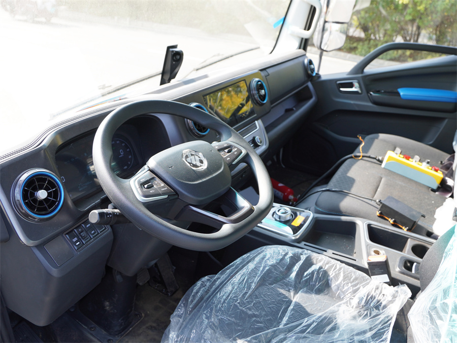 電動多功能抑塵車該車主要用于城鄉道路以及鐵路礦場的防塵除霾工作;主要裝置為罐體及抑塵噴霧裝置;罐體總容量:7.35立方米;罐體有效容積7立方米;罐體外形尺寸(長×長軸×短軸)(mm):3600×2000×1310;側防護材料為鋁合金+Q235碳鋼,連接方式為螺栓連接;后防護材料為:Q235碳鋼,連接方式為:螺栓連接;后防護截面尺寸:120×50mm,后部防護離地高度(mm):440;ABS系統型號/生產企業:ABS-VI.E/廣州瑞立科密汽車電子股份有限公司;電池種類:磷酸鐵鋰電池,儲能裝置單體生產企業:寧德時代新能源科技股份有限公司,儲能裝置總成生產企業:寧德時代新能源科技股份有限公司;電機型號/生產企業:FTTB080C/北汽福田汽車股份有限公司,額定功率:80kw,峰值功率:160kW;選裝前部不帶電子水炮,該狀態下車長為8060mm;當前部安裝電子水炮時,車長為8560mm,車輛前伸500mm;選裝電子水炮樣式.隨底盤選裝駕駛室,選裝噴霧裝置樣式,選裝箭頭燈裝置.