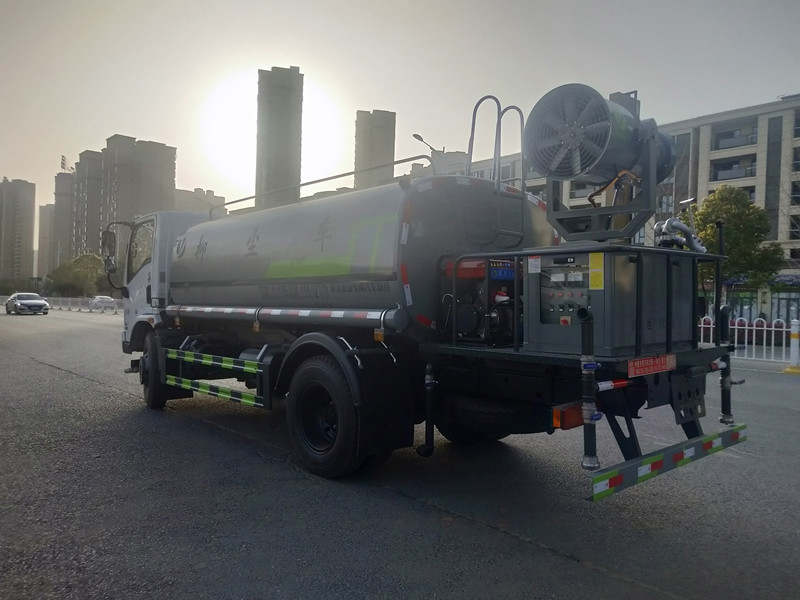 專用部分:帶前沖、后灑、側噴、后工作平臺、尾部帶綠化炮,帶自吸自排灑水泵,后工作平臺高壓水炮直沖射程25-30米(可調成:直沖狀、大雨、中雨、小雨、毛毛雨),整車帶消防接頭、自流閥。附送2根水管。加裝30型霧炮,霧炮可以遙控操作。