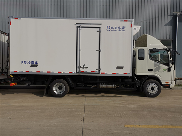 國六江淮帥鈴5米2冷藏車廂體配置為:采用斷橋隔熱工藝,整體框架結構制作,廂體內、外壁材料為玻璃鋼板,采用高密度保溫層,廂板內帶有骨架,廂體厚度80mm,門框,門飾件、包角全部使用不銹鋼材質。最新款鋁合金包邊型材,廂體內采用LED照明燈及廂體示寬燈;門框密封條為橡膠材質,后門梁帶加厚防撞塊,加厚型不銹鋼鉸鏈及鎖件。車體副梁采用510L高強度鋼制作,底板為鋁花紋板,車廂后門帶一個上車扶手,其余標配;